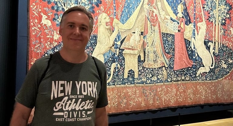 Así, en mis viajes se me impuso un símbolo en la figura del unicornio de las tapicerías medievales del museo The Cloisters en Nueva York y del museo de Cluny en París. Las dos historias paralelas que contaban eran muy distintas, pero el personaje del unicornio era idéntico. Y me di cuenta de que había un puente que unía ambas series, separadas por el destino de la historia.